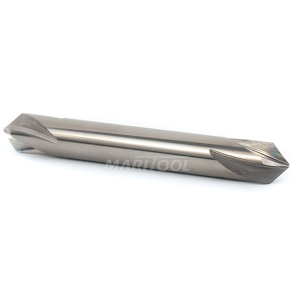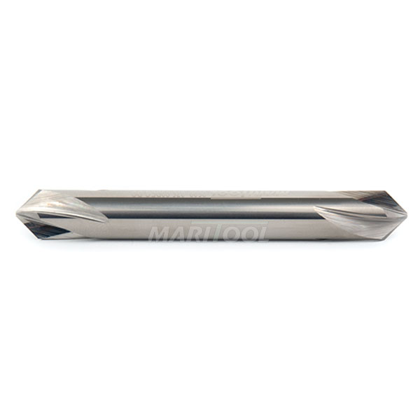 Chamfer mills are used for milling a chamfer on an edge. These are not intended for spotting or center drilling. This tool is double ended for cost savings and made from Solid Carbide.