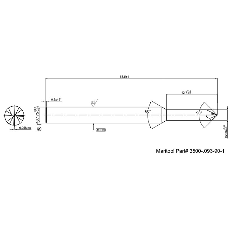 Chamfer mills are used for milling a chamfer on an edge. These are not intended for spotting or center drilling. This tool is made from Solid Carbide and TiAlN coated for longer tool life.