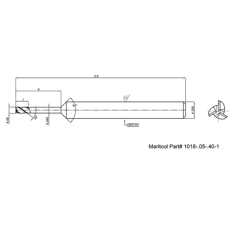 .05 dia 3 Flute Square Necked End Mill With .40 Reach
