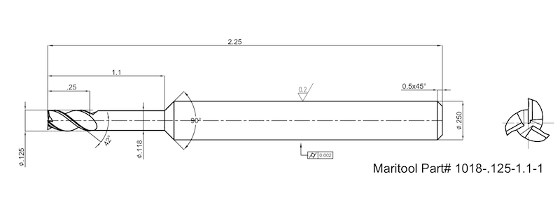 Home » Cutting Tools » End Mills » Finishers Square End » Square End Long Reach Short Flute » 1018-.125-1.1-1