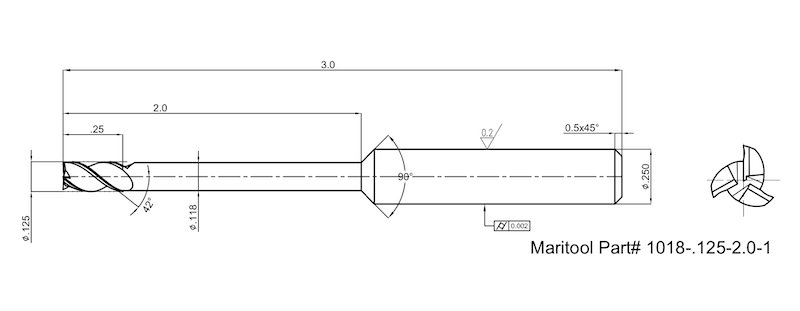 Home » Cutting Tools » End Mills » Finishers Square End » Square End Long Reach Short Flute » 1018-.125-2.0-1