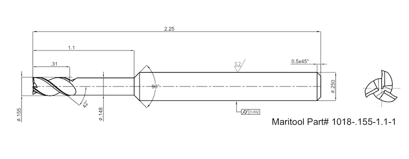Home » Cutting Tools » End Mills » Finishers Square End » Square End Long Reach Short Flute » 1018-.155-1.1-1