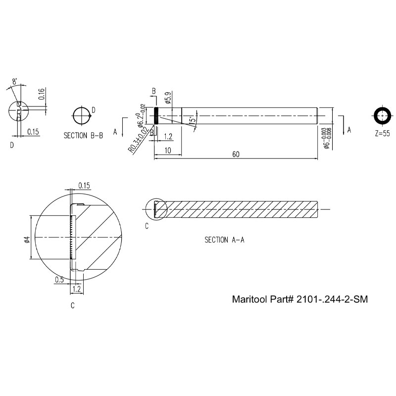 55 Flute PCD Tipped End Mill .244 dia x 1.2mm flute length