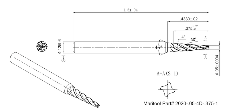 Home » Cutting Tools » End Mills » Tapered End Mills » Tapered End Mills Square End » 2020-.05-4D-.375-1