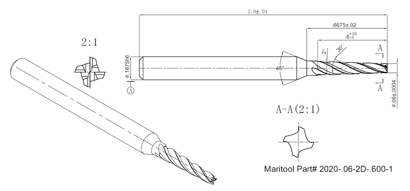 Home » Cutting Tools » End Mills » Tapered End Mills » Tapered End Mills Square End » 2020-.06-2D-.600-1