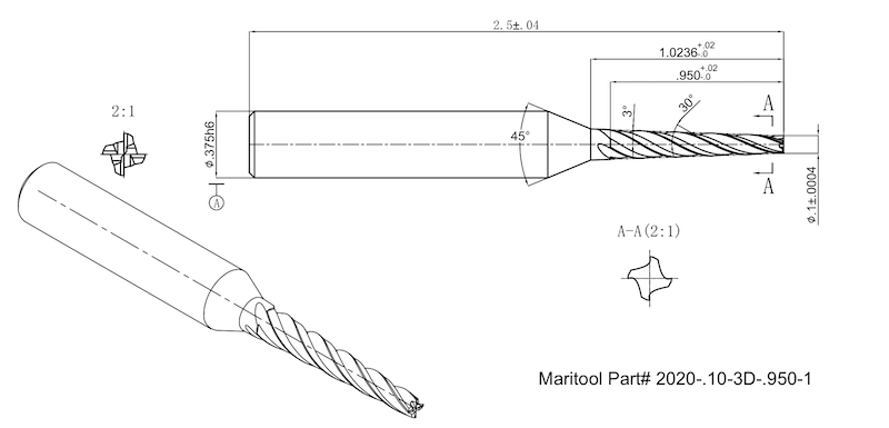 Home » Cutting Tools » End Mills » Tapered End Mills » Tapered End Mills Square End » 2020-.10-3D-.950-1