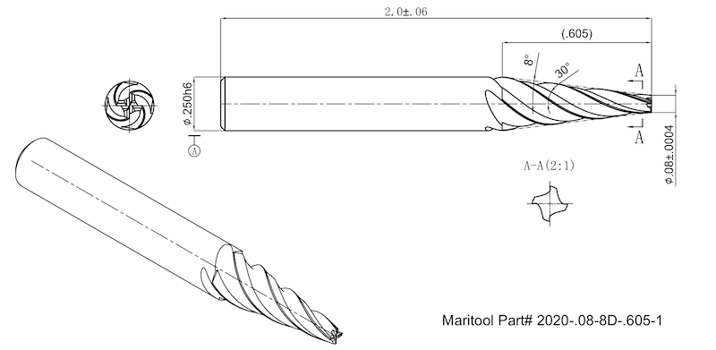 Home » Cutting Tools » End Mills » Tapered End Mills » Tapered End Mills Square End » 2020-.08-8D-.605-1