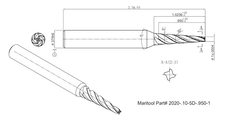 Home » Cutting Tools » End Mills » Tapered End Mills » Tapered End Mills Square End » 2020-.10-5D-.950-1