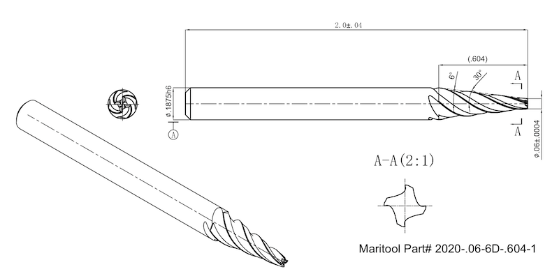 Home » Cutting Tools » End Mills » Tapered End Mills » Tapered End Mills Square End » 2020-.06-6D-.604-1