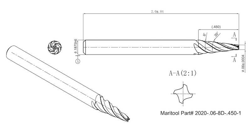 Home » Cutting Tools » End Mills » Tapered End Mills » Tapered End Mills Square End » 2020-.06-8D-.450-1