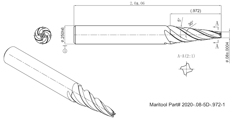 Home » Cutting Tools » End Mills » Tapered End Mills » Tapered End Mills Square End » 2020-.08-5D-.972-1