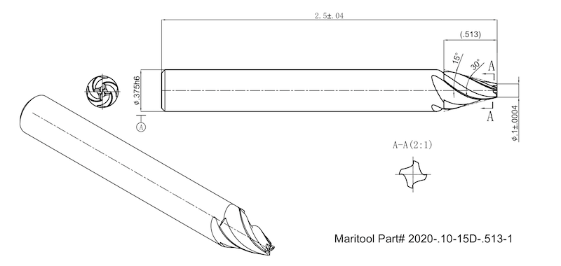 Home » Cutting Tools » End Mills » Tapered End Mills » Tapered End Mills Square End » 2020-.10-15D-.513-1