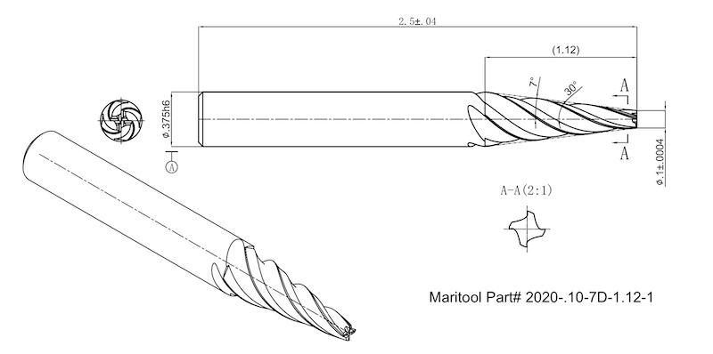 Home » Cutting Tools » End Mills » Tapered End Mills » Tapered End Mills Square End » 2020-.10-7D-1.12-1