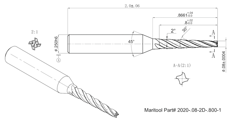Home » Cutting Tools » End Mills » Tapered End Mills » Tapered End Mills Square End » 2020-.08-2D-.800-1