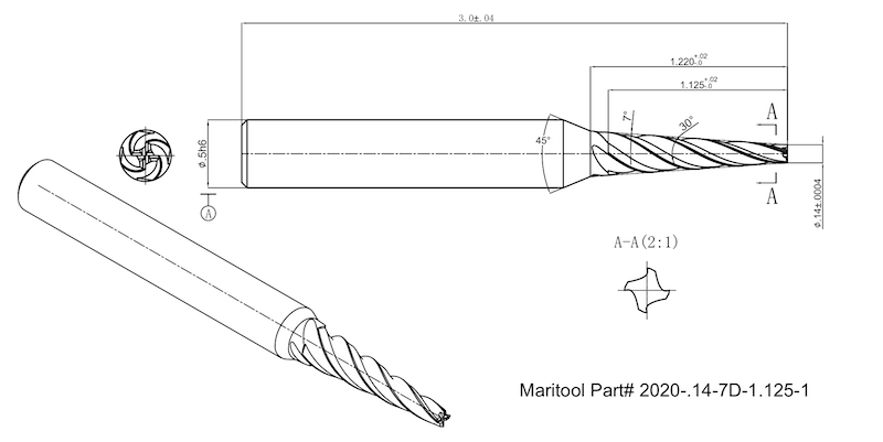 Home » Cutting Tools » End Mills » Tapered End Mills » Tapered End Mills Square End » 2020-.14-7D-1.125-1