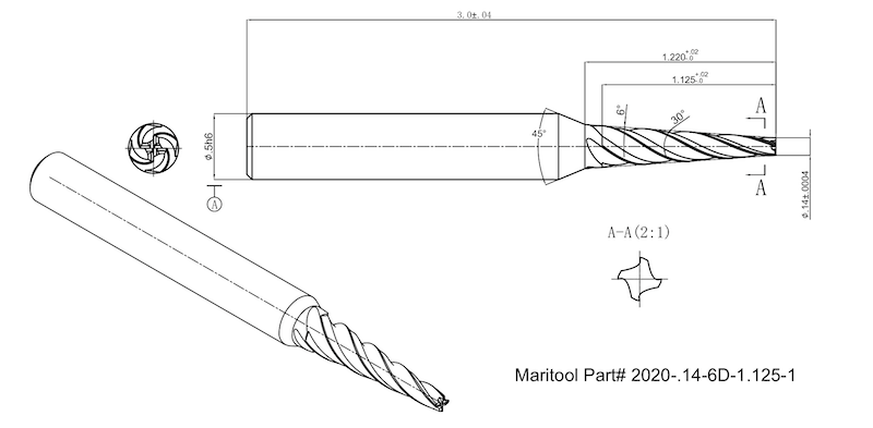 Home » Cutting Tools » End Mills » Tapered End Mills » Tapered End Mills Square End » 2020-.14-6D-1.125-1