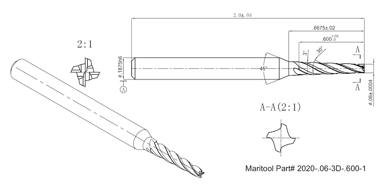 Home » Cutting Tools » End Mills » Tapered End Mills » Tapered End Mills Square End » 2020-.06-3D-.600-1