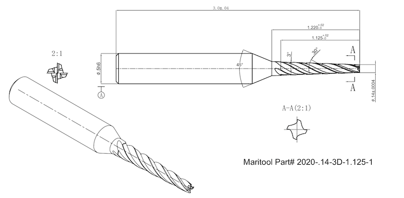 Home » Cutting Tools » End Mills » Tapered End Mills » Tapered End Mills Square End » 2020-.14-3D-1.125-1
