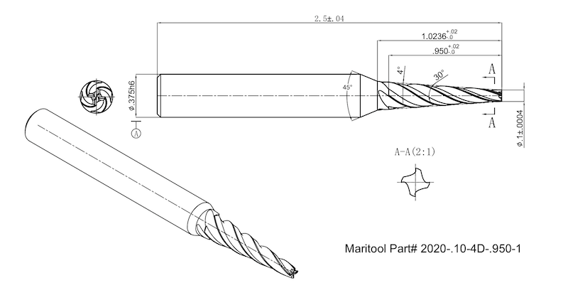 Home » Cutting Tools » End Mills » Tapered End Mills » Tapered End Mills Square End » 2020-.10-4D-.950-1