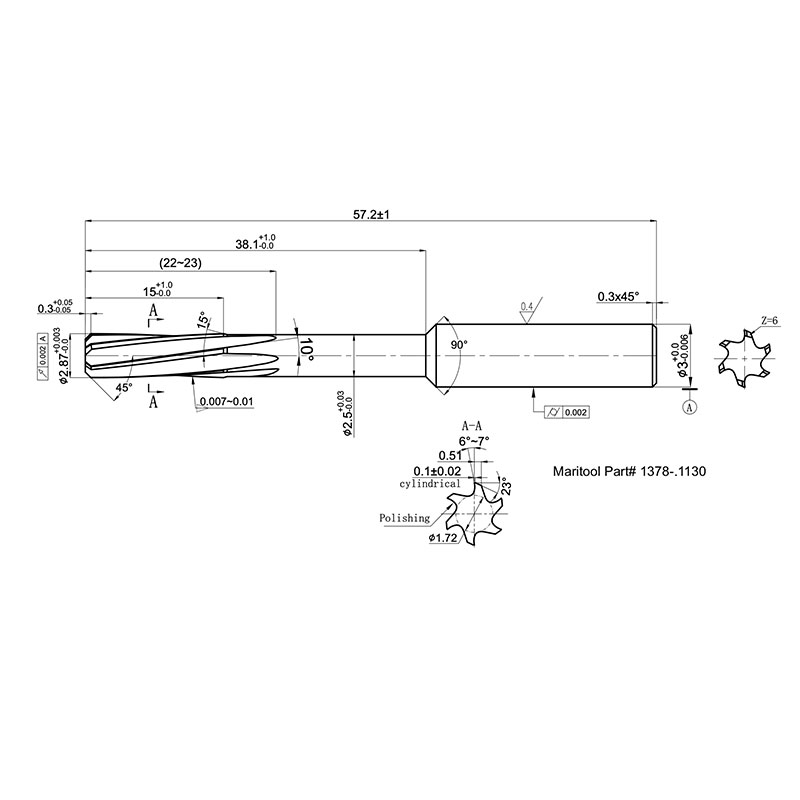 Cutting Diameter Tolerance:  -.0000/+.00012