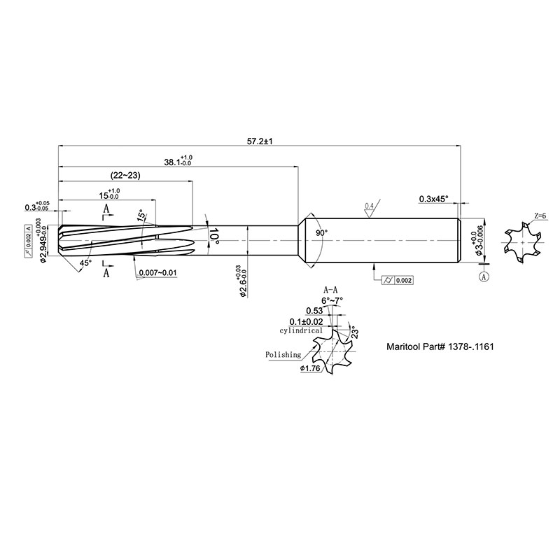Home / Cutting Tools / Reamers / High Precision Carbide Reamers / 1378-.1161