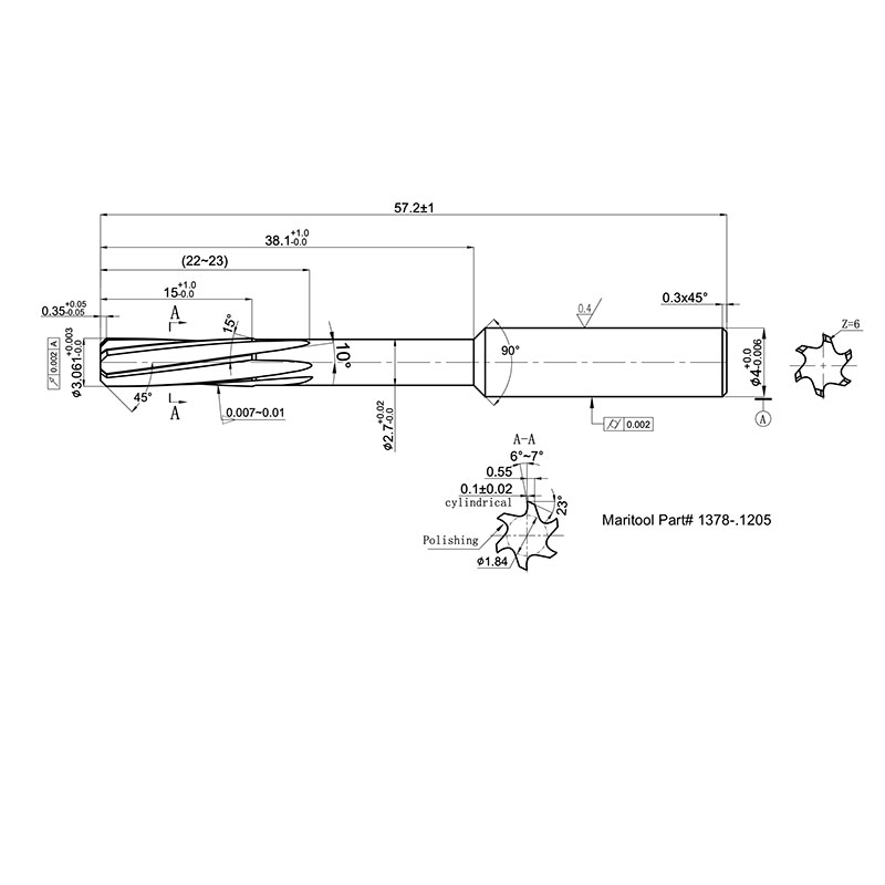 Cutting Diameter Tolerance:  -.0000/+.00012