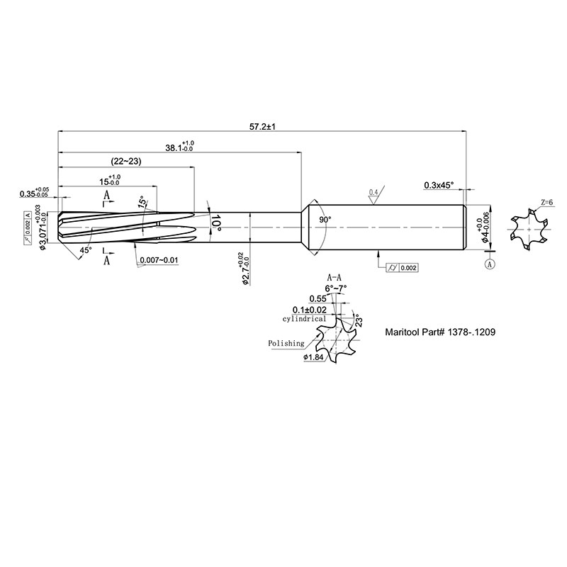 Cutting Diameter Tolerance:  -.0000/+.00012