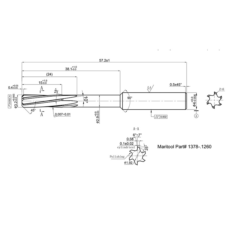 Cutting Diameter Tolerance:  -.0000/+.00012