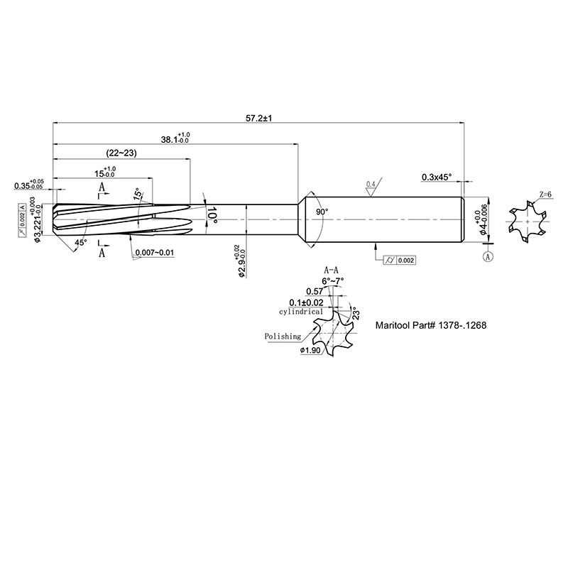 Cutting Diameter Tolerance:  -.0000/+.00012