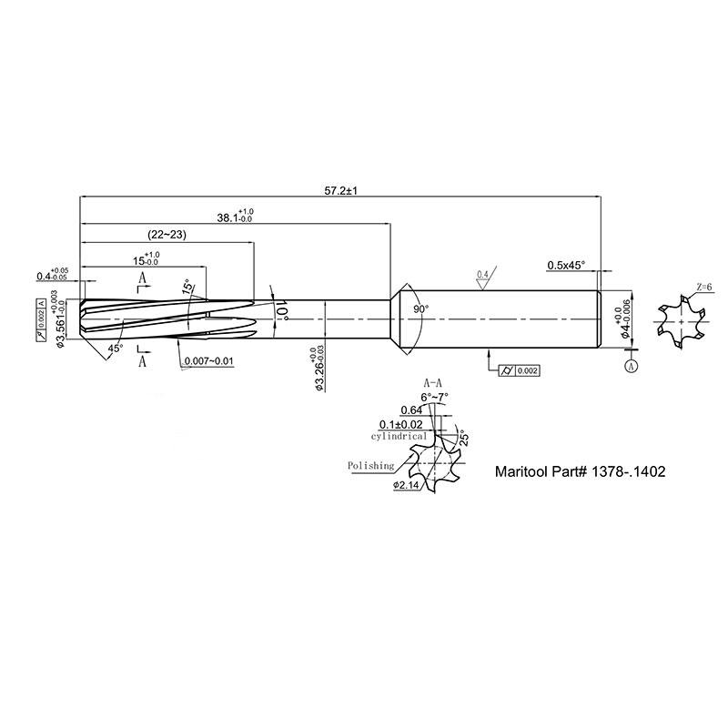 Cutting Diameter Tolerance:  -.0000/+.00012