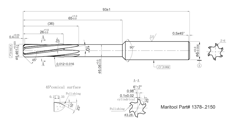 Cutting Diameter Tolerance:  -.0000/+.00012