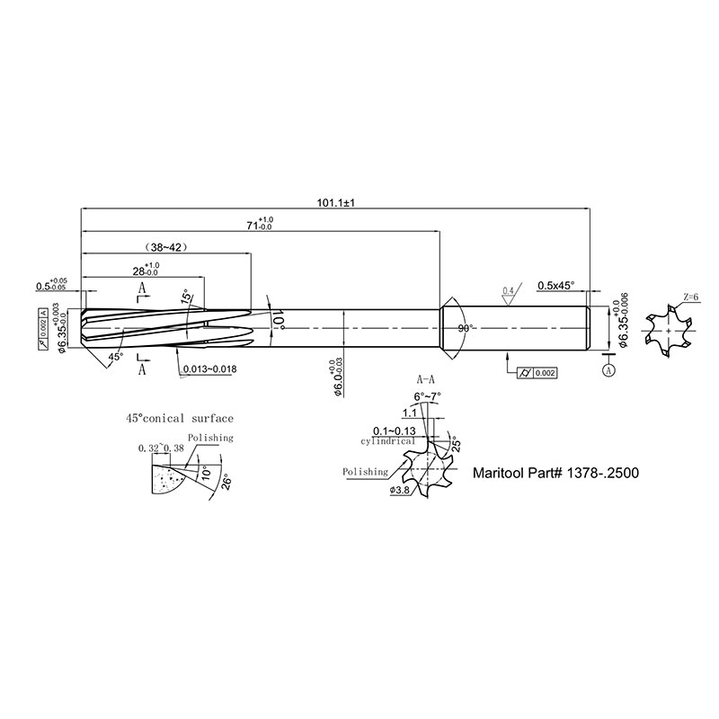 Cutting Diameter Tolerance:  -.0000/+.00012