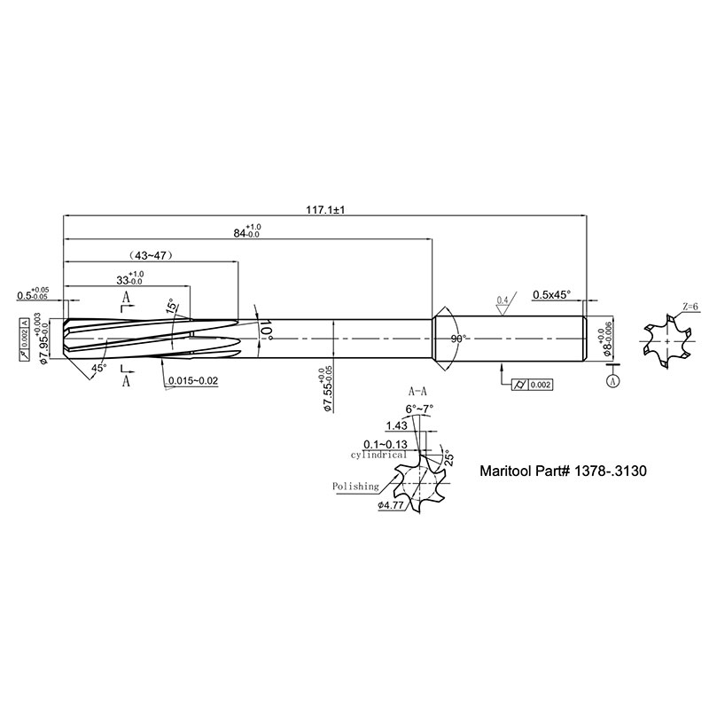 Home » Cutting Tools » Reamers » High Precision Carbide Reamers » 1378-.3130