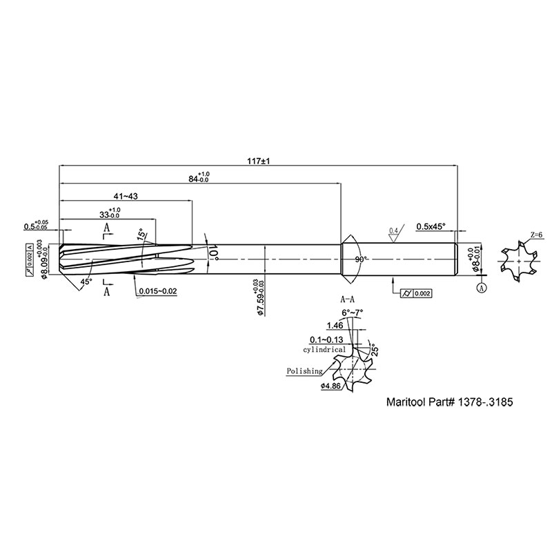 Home » Cutting Tools » Reamers » High Precision Carbide Reamers » 1378-.3185