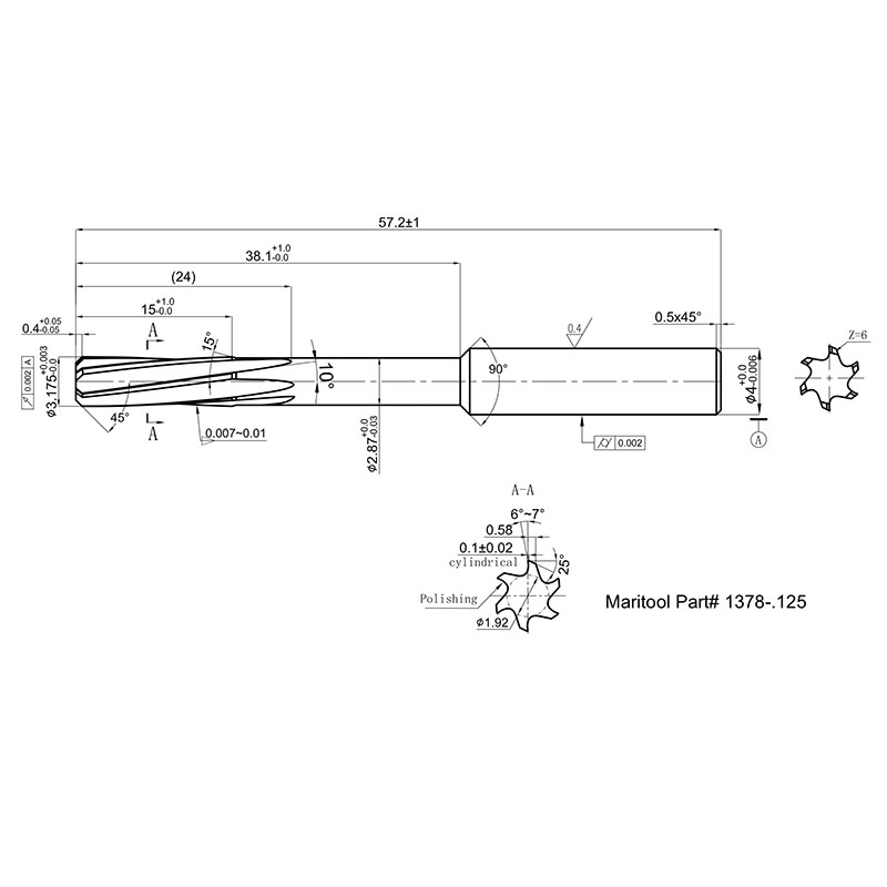 Cutting Diameter Tolerance:  -.0000/+.00012
