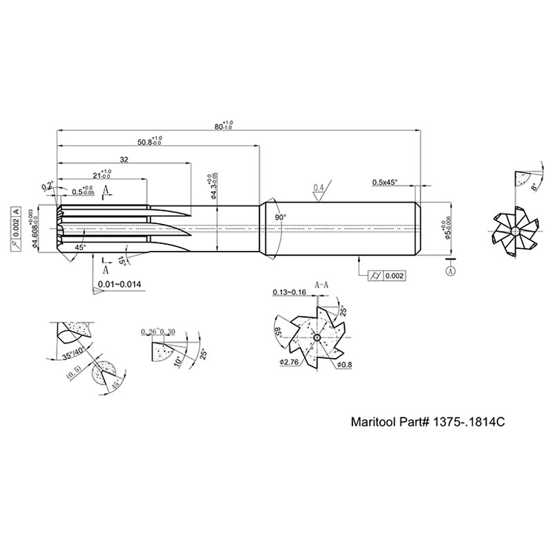 Home » Cutting Tools » Reamers » Solid Carbide Chucking » 1375-.1814C