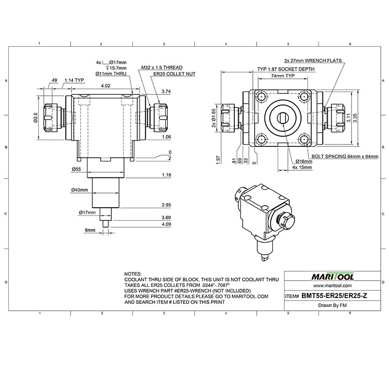 Item No. BMT55-ER25/25-Z