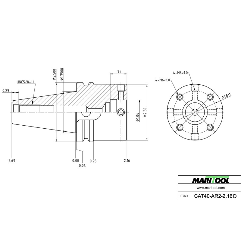 - MariTool Part# is CAT40-AR2-2.16D