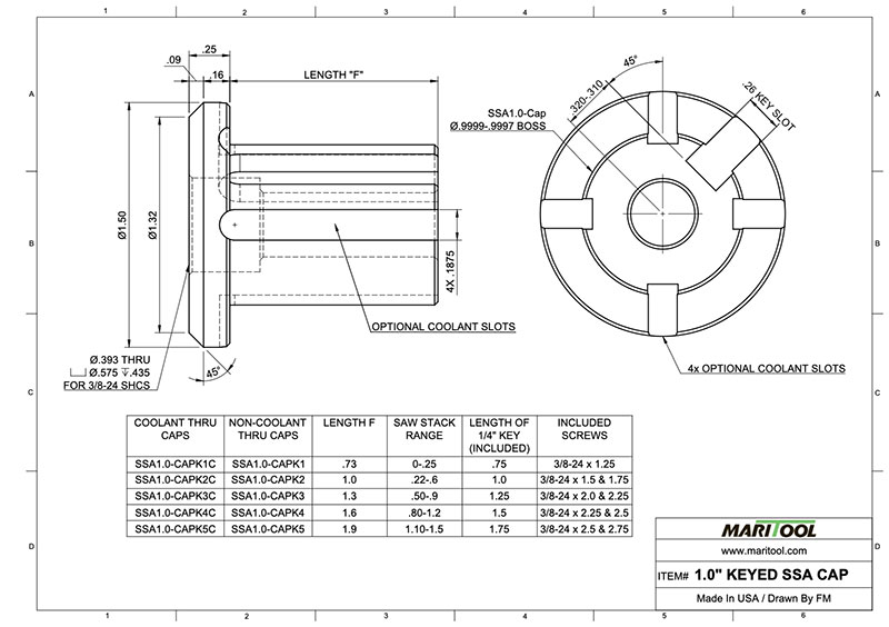 • Saw cap is .250 Inches thick and .9999 diameter boss is .730 long