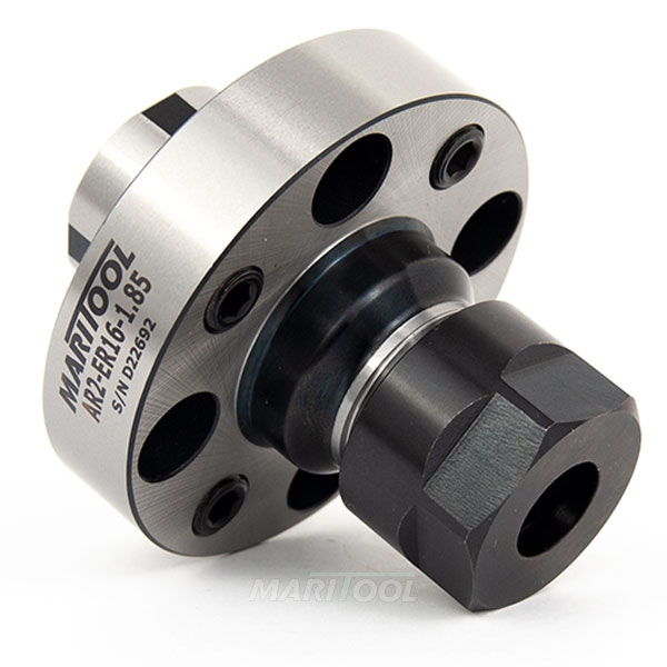 - Shaft in back goes into the AR2 tool holder and allows set screws to adjust runout