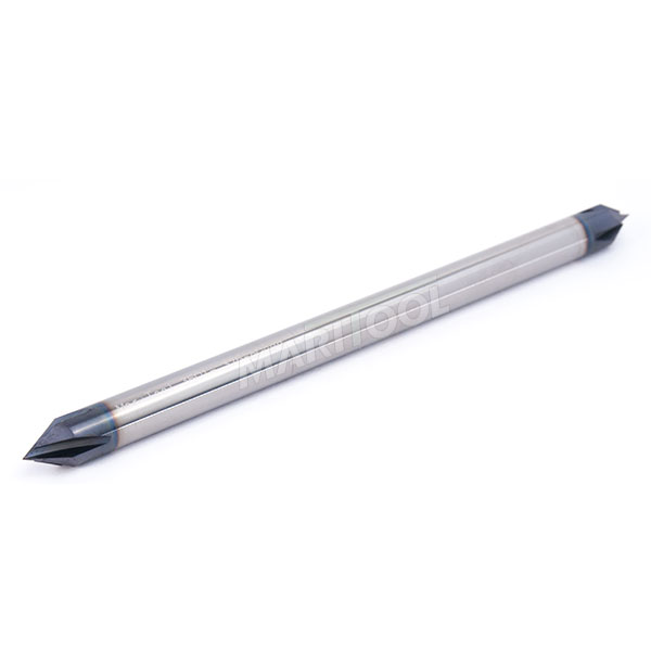 Chamfer mills are used for milling a chamfer on an edge. These are not intended for spotting or center drilling. This tool is double ended for cost savings, made from Solid Carbide and TiAlN coated for longer tool life. Made in USA.