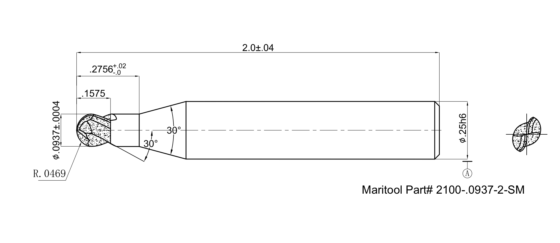 Home » Cutting Tools » End Mills » PCD / CVD Tipped » Ball End » 2100-.0937-2-SM
