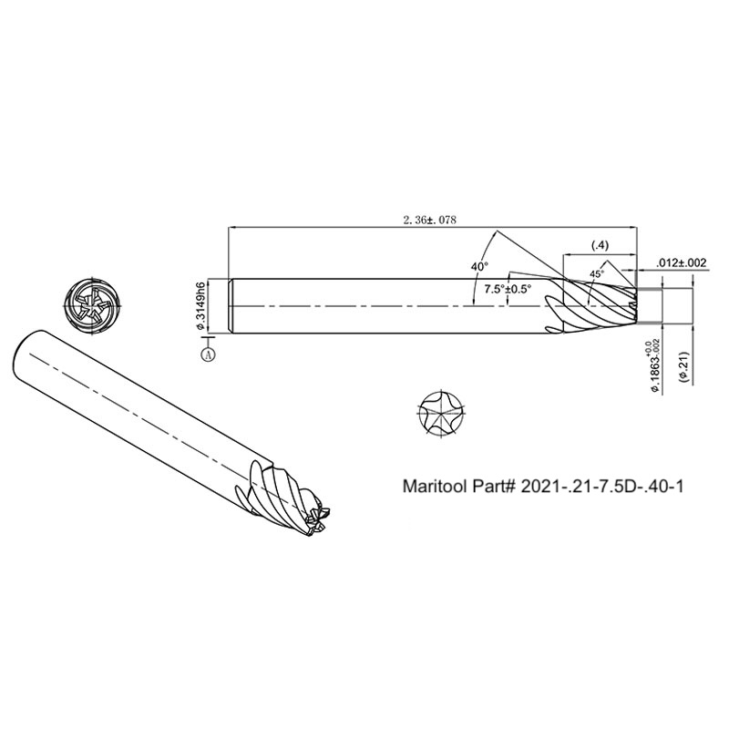 .3149 Shank 7.5deg per side 5 flute End Mill With .400 loc and Corner Chamfer SiC Coated