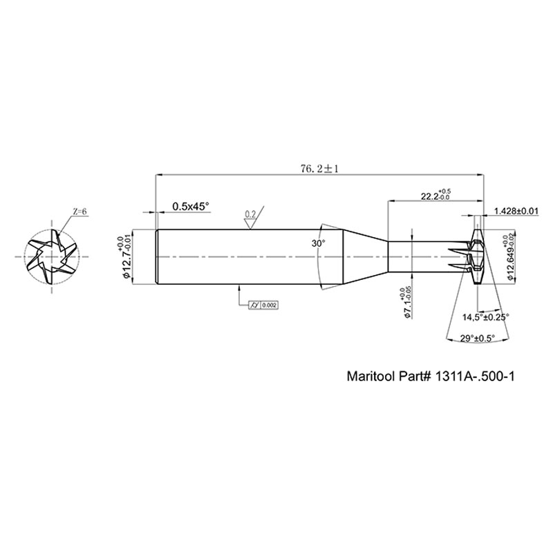 Home » Cutting Tools » Thread Mills / Relief Cutters » Acme and Stub Thread Forms » Acme Single Pitch Thread Form » 1311A-.500-1
