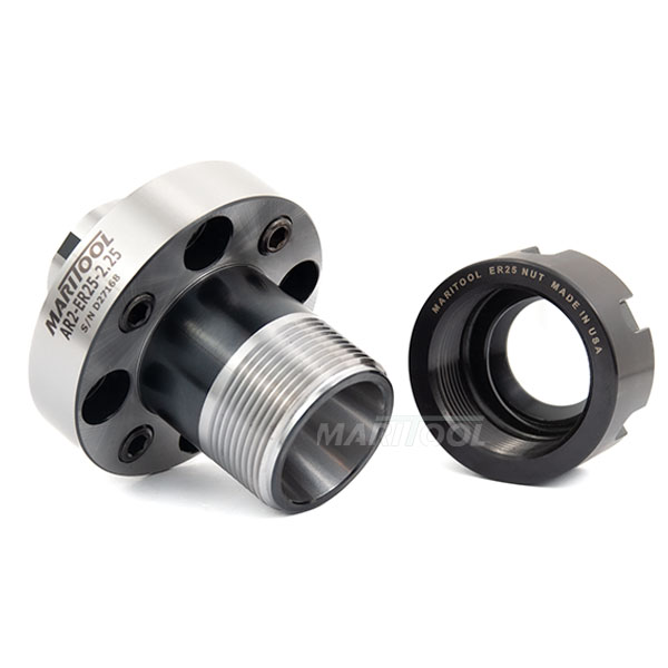 - Shaft in back goes into the AR2 tool holder and allows set screws to adjust runout